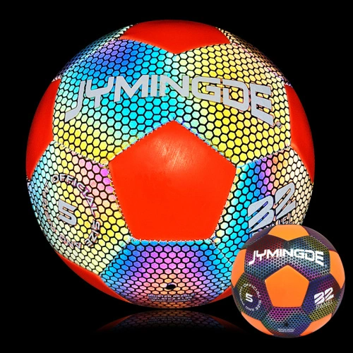 This is a machine-sewn Glow In The Dark Soccer Ball football. The black part is made of reflective leather, which will reflect light under the light. The orange part is made of rubber.This football contains LED lights that can be charged to make it glow.